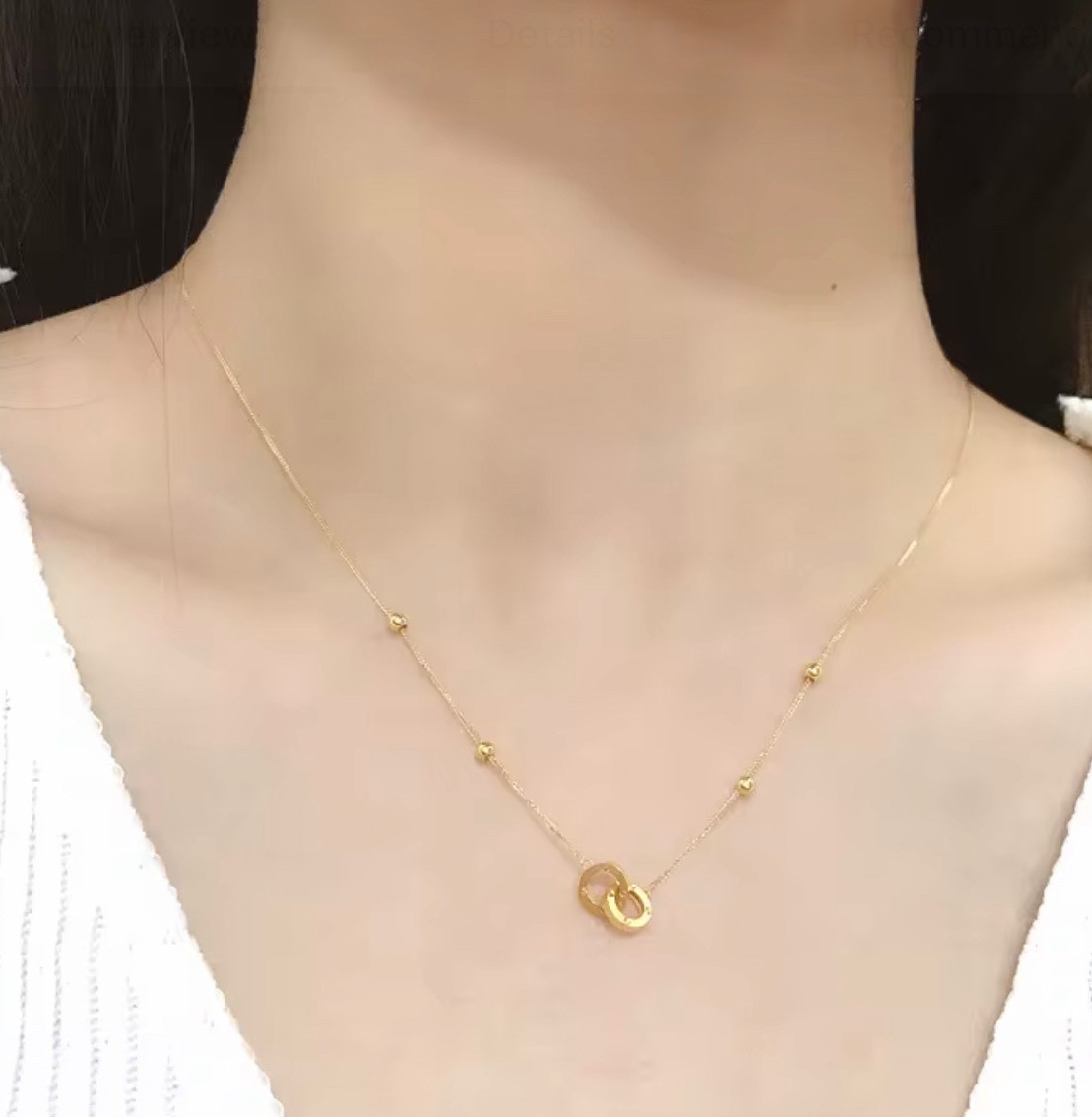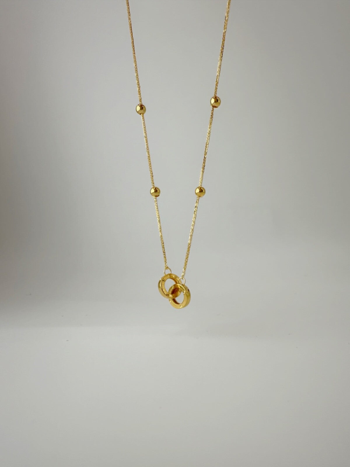 18K Solid Gold Interlocking Ring Necklace | Double Ring Minimalist Necklace