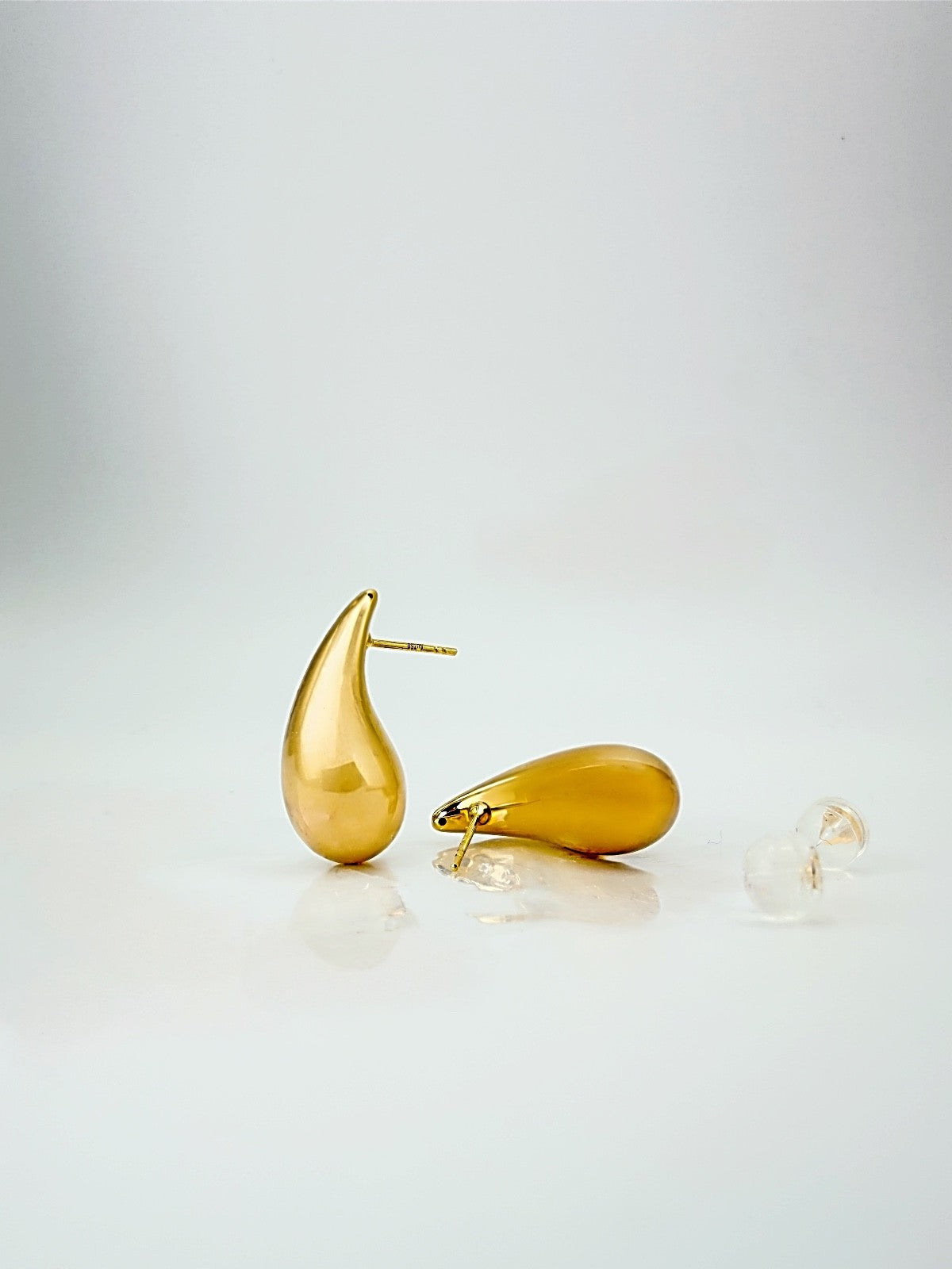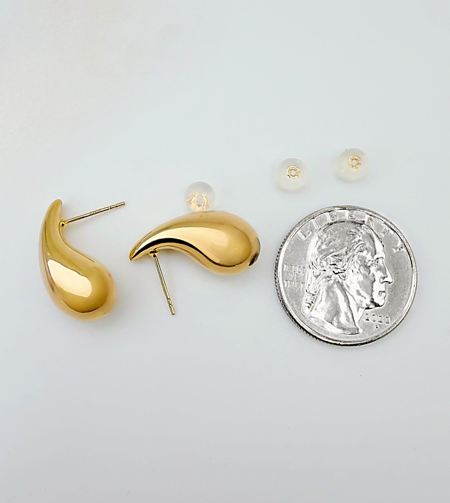 18K Real Gold Water Drop Stud Earrings | Teardrop / Dew Drop Design | 1.57g | Electroform