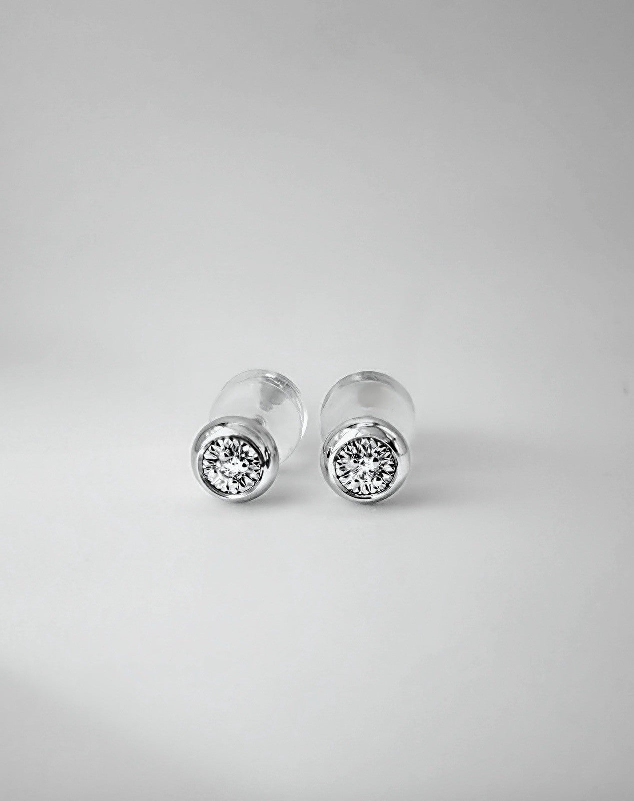 18K Solid White Gold Diamond Bezel Stud Earrings | 0.02 CTW | Minimalist Fine Jewelry