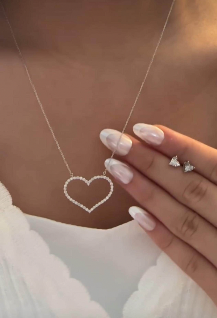 These 18K solid gold diamond heart earrings feature natural F–G color diamonds set in a refined miracle plate setting, designed to enhance brilliance while maintaining a delicate, minimalist profile. The result is a luminous heart silhouette that feels romantic yet restrained — subtle sparkle with lasting presence.