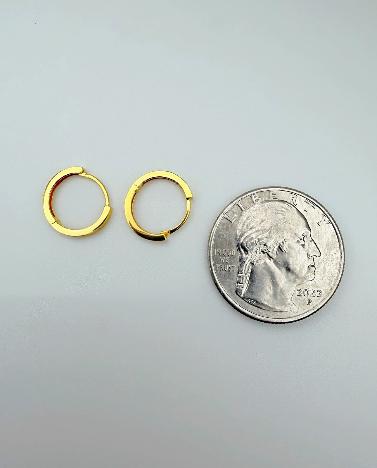 18K Solid Gold 12mm Huggie Hoop Earrings | Minimalist Hoops