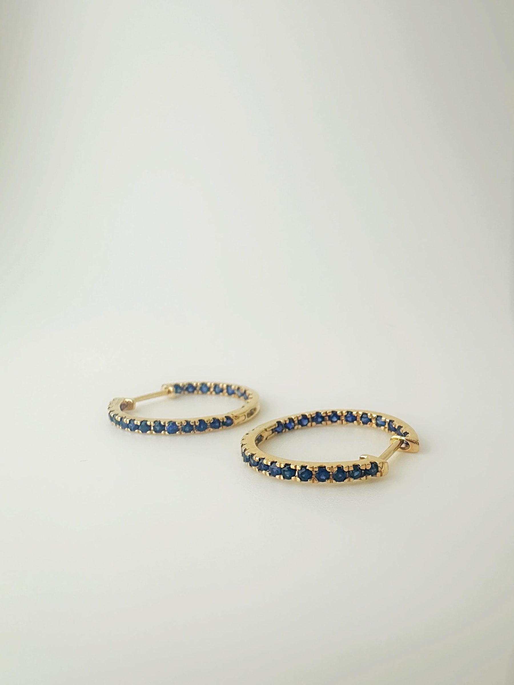 Style: Blue Sapphire Hoops · In & Out Earrings · Elegant Minimalist · 18K Fine Jewelry